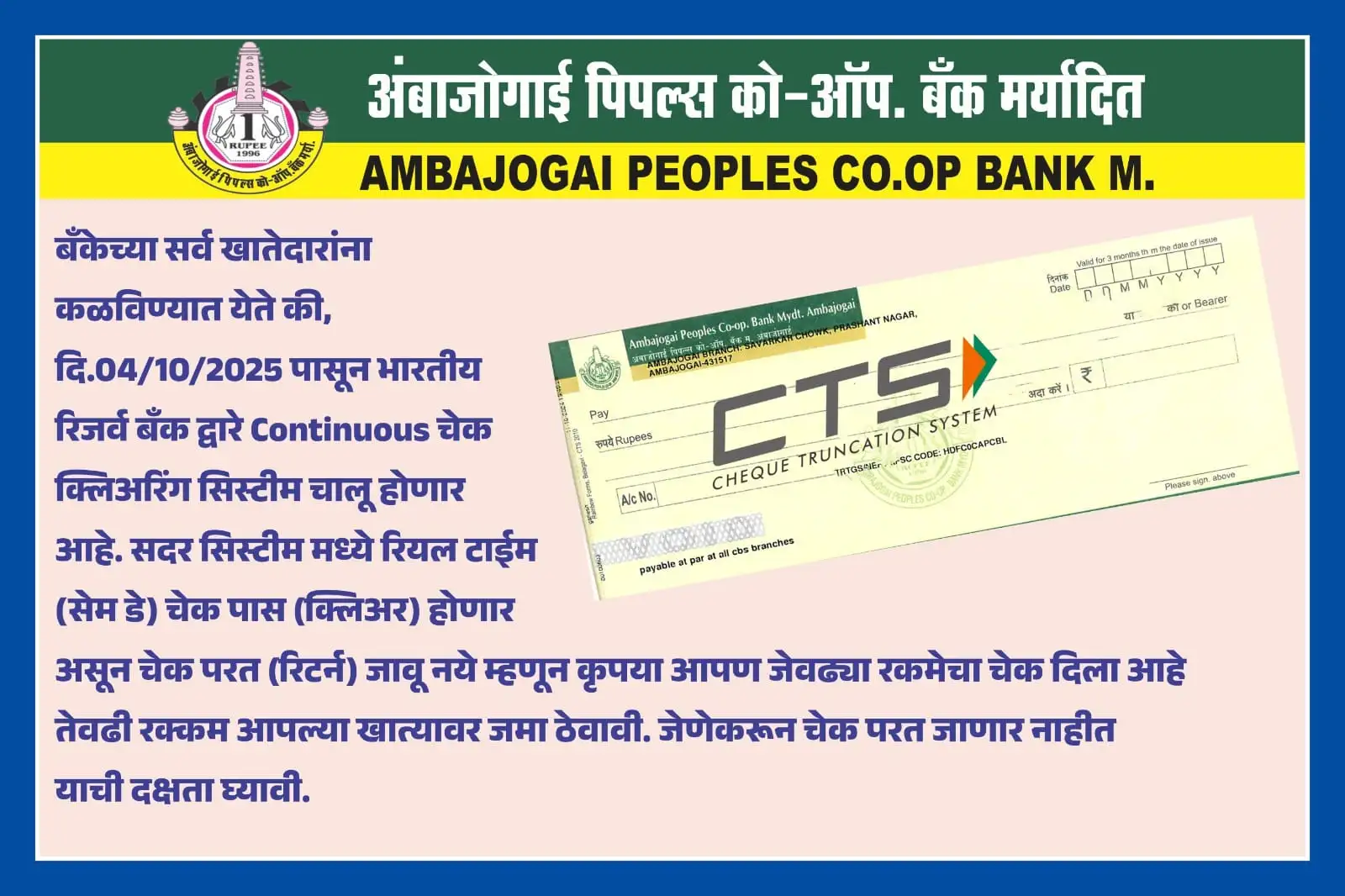 Ambajogai Peoples co-op bank is a CBS bank and all branches have been covered under core banking from sept 2014.